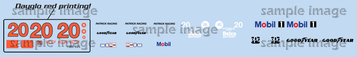 With DAYGLO RED numbers! Designed for use with Classic Racing Resin's 1/25 scale PC18 conversion (pictured) for the AMT Penske PC17 kits. Available in a variety of other scales. Tobacco markings not included. Available as full set (as pictured), or dayglo markings only (outlined area).