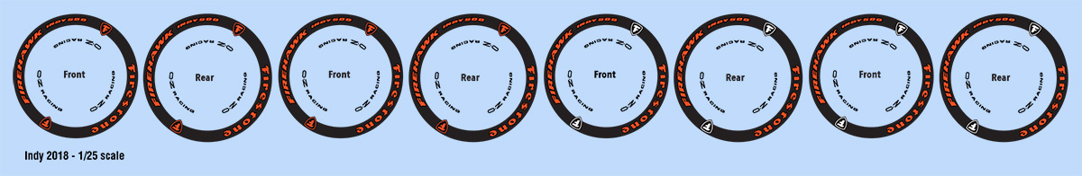 Tire decals for the 2018, 102nd running. One set has markings to do one car, both sides of the tires.