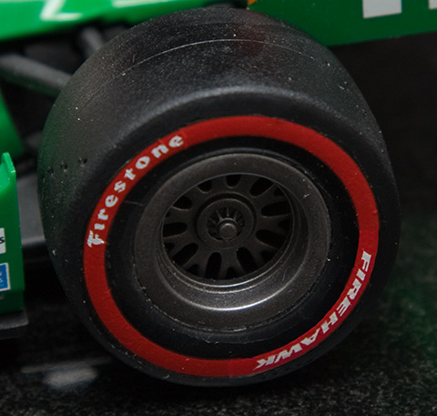The available scales have the following quantities per sheet (one set equals enough to do both sides of four tires): 1/18 scale - one set, 1/24 scale - 2 sets, 1/32 scale - 2 sets, 1/43 scale - 3 sets.