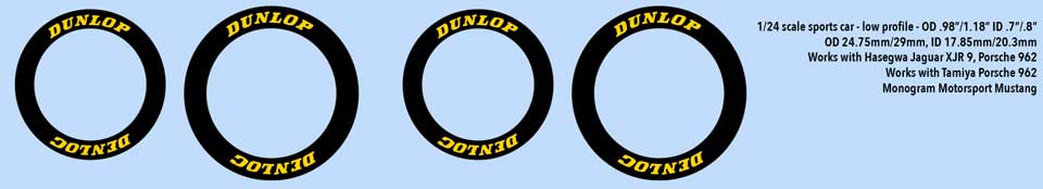 1/24 scale high profile tires fit Tamiya Porsche 956 and Tamiya Jaguar XJR9. DO not order for the Hasegawa XJR9.