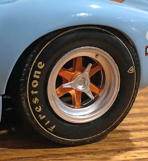 1/24 scale high profile tires fit 1/24 Fujimi GT 40 tires. These tires run narrow and tall. These tires have gold lettering.