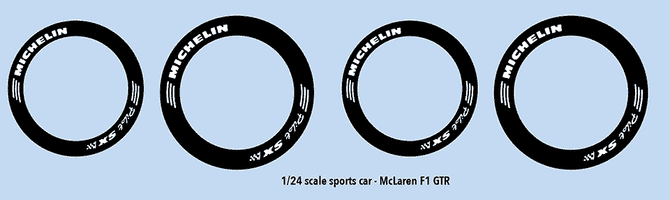 1/24 scale tires fit the resin tires produced by Classic Racing Resins for their Fujimi F1GTR conversion/correction kit.
