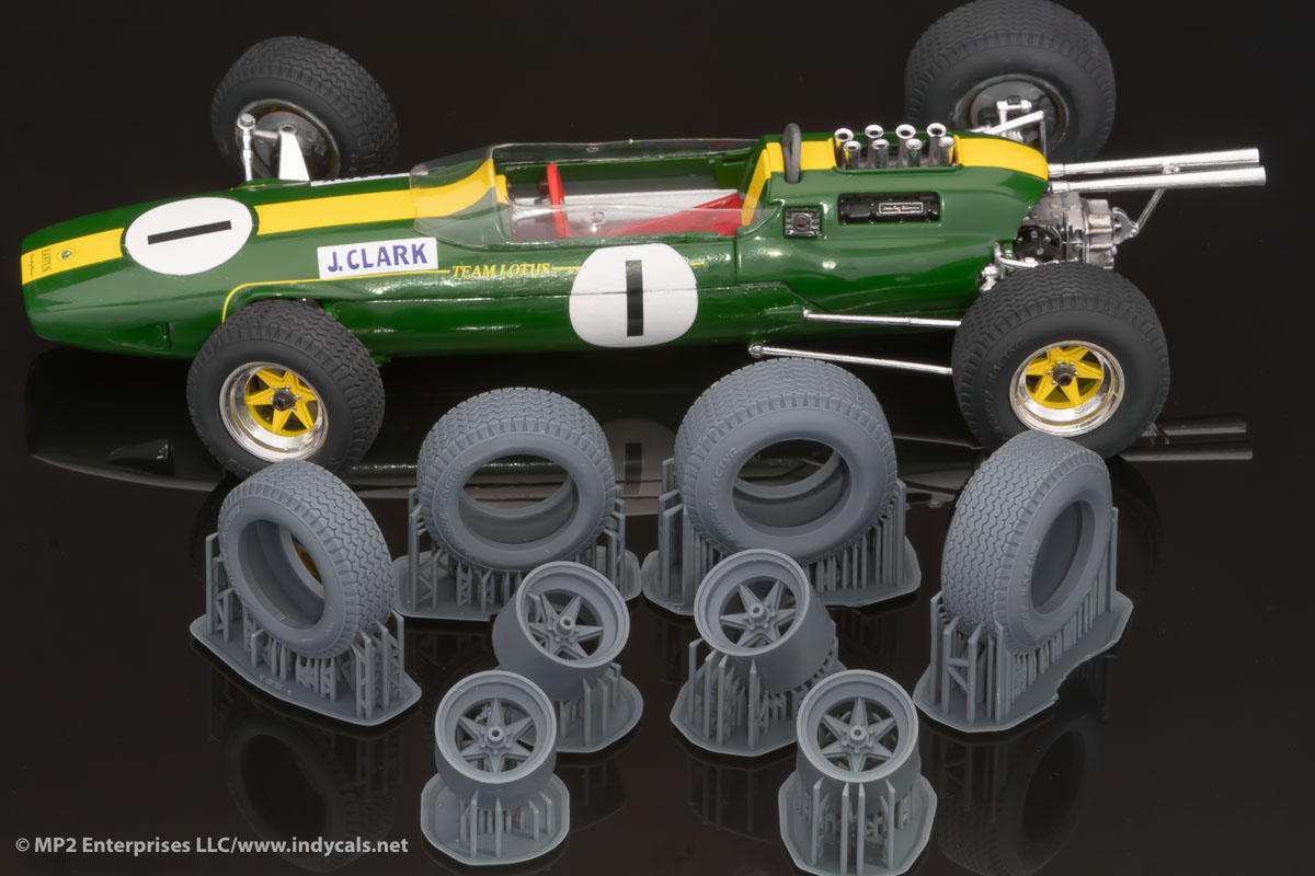 This set of wheels and tires will let you update your Lotus 25 for the races in 1964 and 65 where these wheels and tires were used: