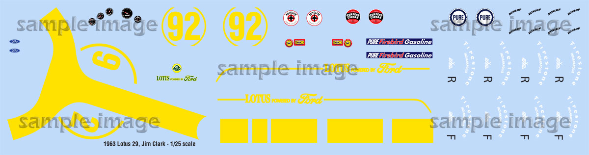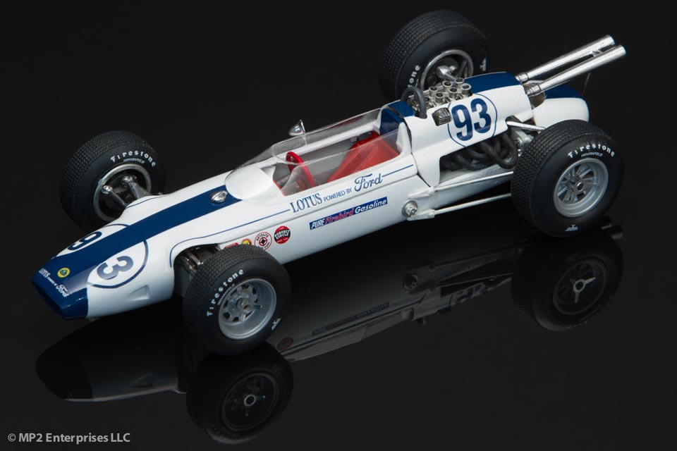 A colaborative effort between Indycals and Classic Racing Resins, this upgrade kit is long overdue for the 1/25 scale AMT Lotus 29. Now you can finally build an an accurate version of the cars driven by Jim Clark and Dan Gurney in the 1963 Indianapolis 500 and later in the year at Milwaukee. This kit comes with a resin nose, vac-u-form windscreen, our new resin tires and decals for eithe Jim Clark or Dan Gurney. (I shouldn't have to poing this out, but I will anyway: finished cars not included)