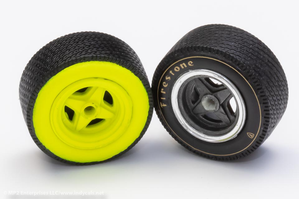 These parts are designed by Indycals and cast in black resin by Calvin Sallee at Classic Racing Resins and sold and shipped by Indycals/MP2 Hobbies. Please note: All our tires have a spot on the tread that is unfinished - this is where the resin is poured in. Use this part of the tire for the bottom. (We recommend to sand it slightly flat to represent the contact patch).
