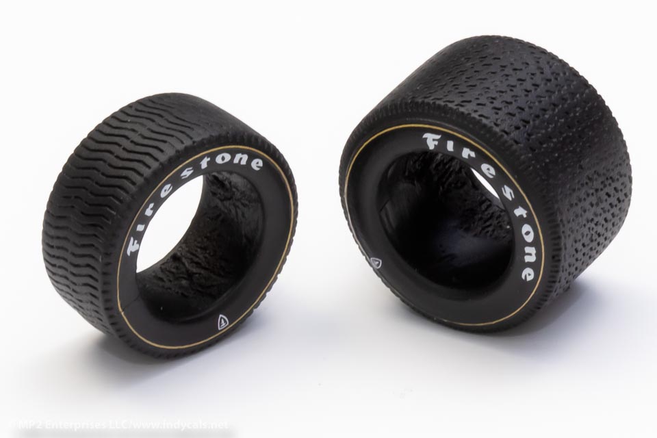 Accurate 1/25 scale tires for "stones"-shod Indycars from 1971.