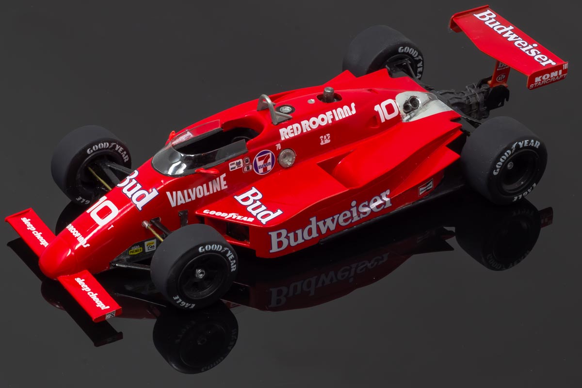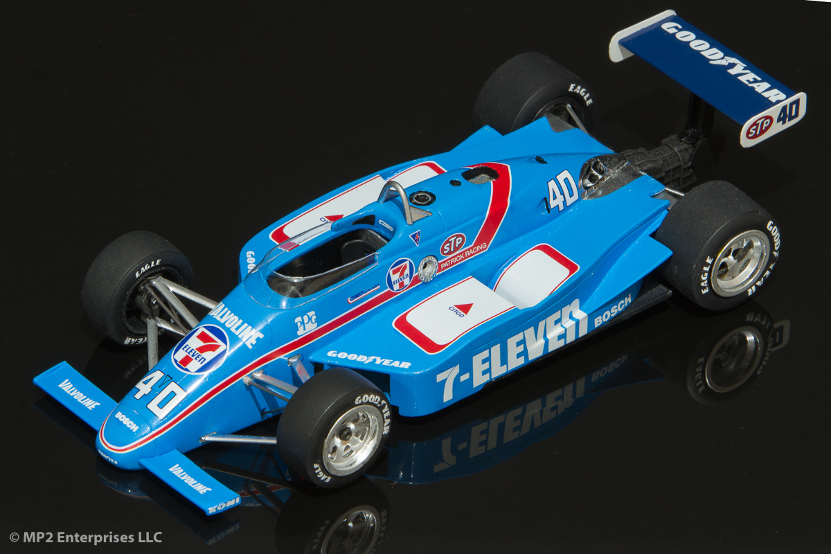 A full-detail 1/25 scale kit with parts made in resin and white metal. Cast in resin by Calvin Sallee at Classic Racing Resins. We have options for a variety of cars including all three 1985 500 mile race winners, Indy, Michigan and Pocono.