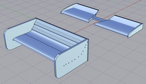 Rear wing main plane has positioning indents on the bottom for the wing supports, which you will need to trim down slightly on the kit.