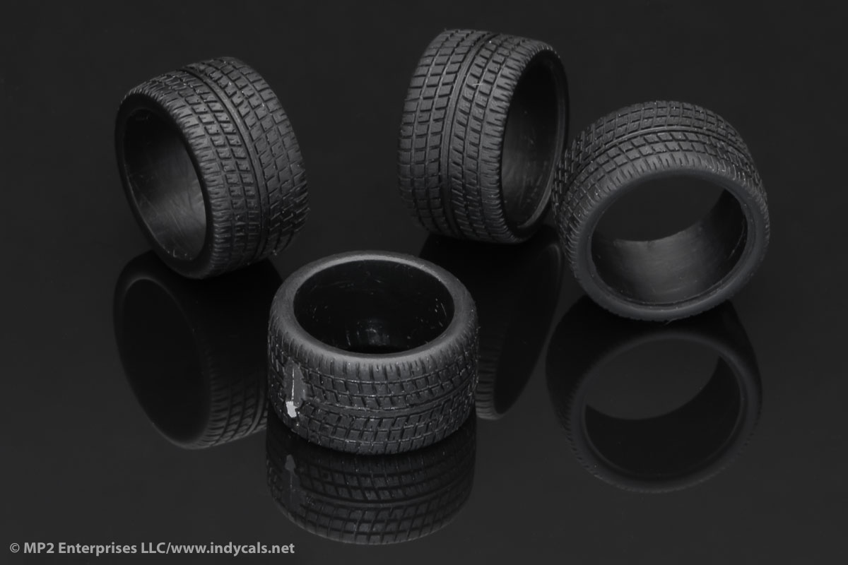 Given the nature of resin casting, these tires have a mold plug on the tread and can be seen on the tire laying on it's side in the bottom photo. Use this part of the tire for the contact patch - you cam make. These tires will require minor cleanup/sanding. We recomment painting with Tamiya TS82 rubber paint, or Duplicolor Flat Black Automotive paint for the most natural rubber appearance. No primer is necessary.